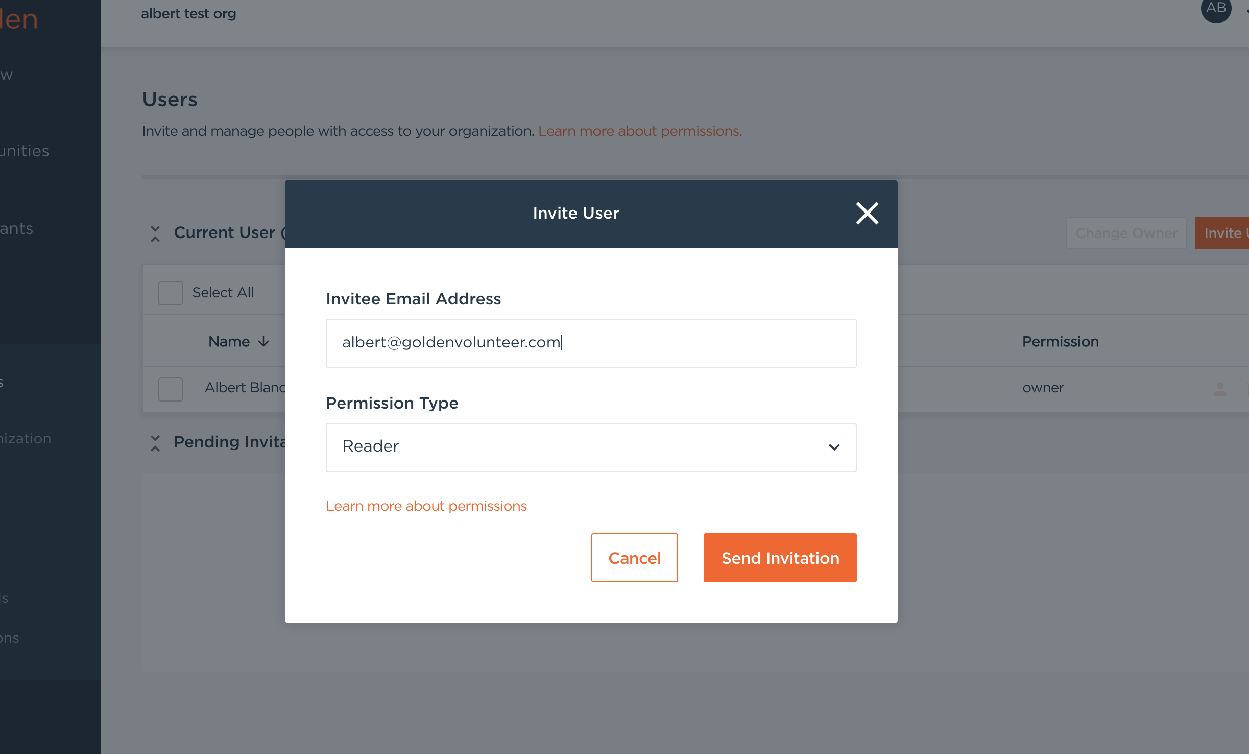 - When you're all set, click Send Invitation, and an email will be sent to the invitee with a link for them to setup their password.