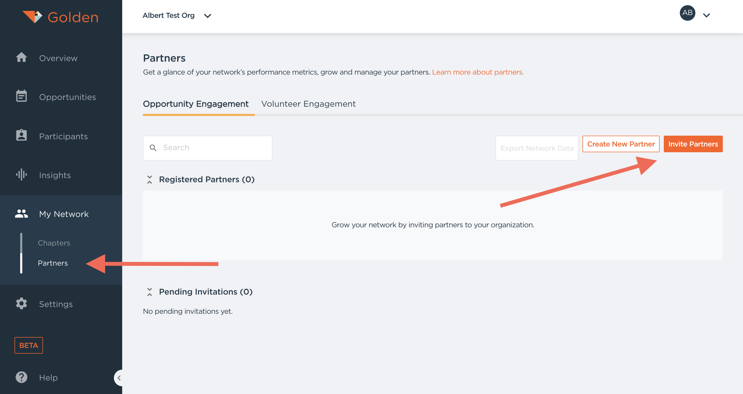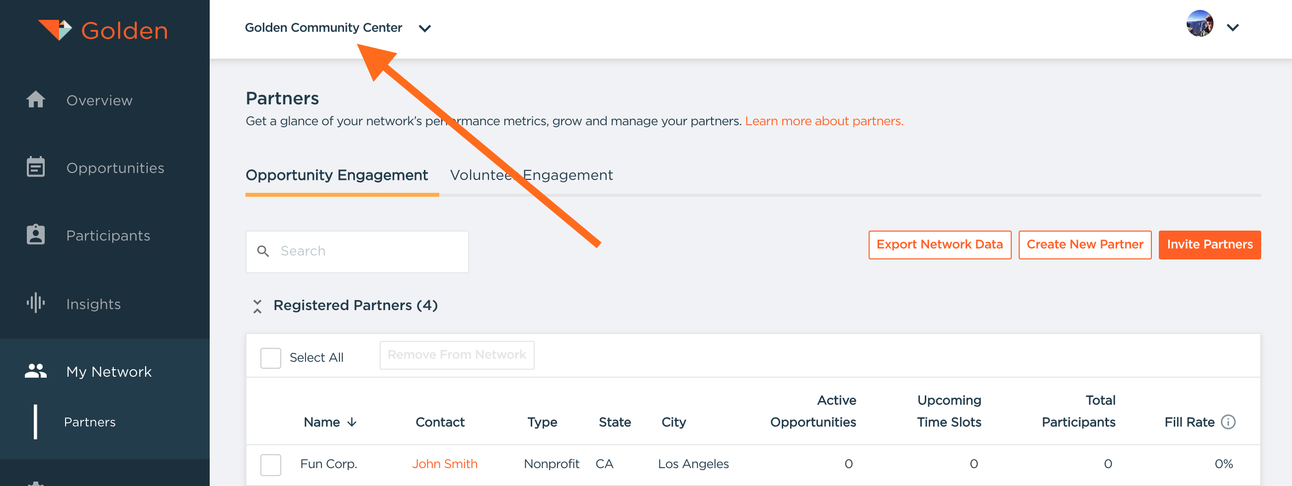 Email us at support@goldenvolunteer.com to get set up. You'll need appropriate permissions and feature access to manage Partners.